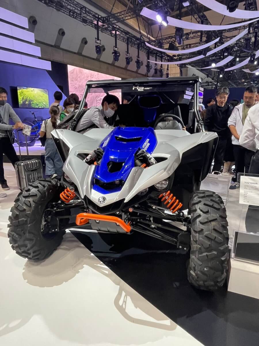 次世代のモビリティへの開発も行われています。YXZ1000Rは水素エンジン搭載の4輪バギー。このように内燃機関を次世代に残すための研究も進められているそうです。4輪バギーによる水素車のテストはトヨタはもちろんヤマハ以外のバイクメーカーでもおこなわれており、4輪2輪の枠を超えた開発が急がれます。