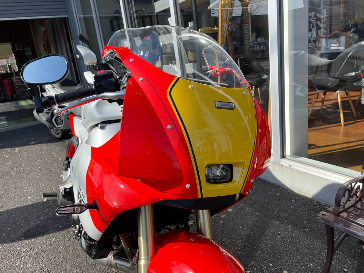1980〜90年代のグランプリマシンを彷彿とさせる美しいデザインが特徴的です。タンク形状やフェアリングが、GPマシンのDNAを現代に蘇らせています。走らせると昔GPレーサーに憧れたあのころに一瞬でタイムスリップできるバイクです!